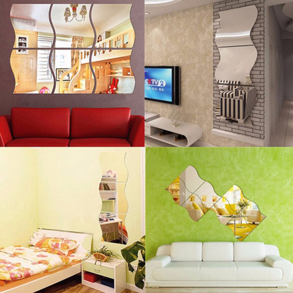 Yuan 6pcs Set Diy Removable Home Room Wall Mirror Sticker Art