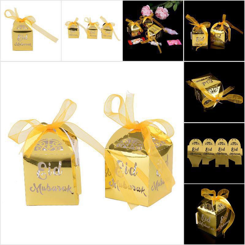Food Ste 10pcs Lot Gold Happy Eid Mubarak Candy Gift Box Ramadan