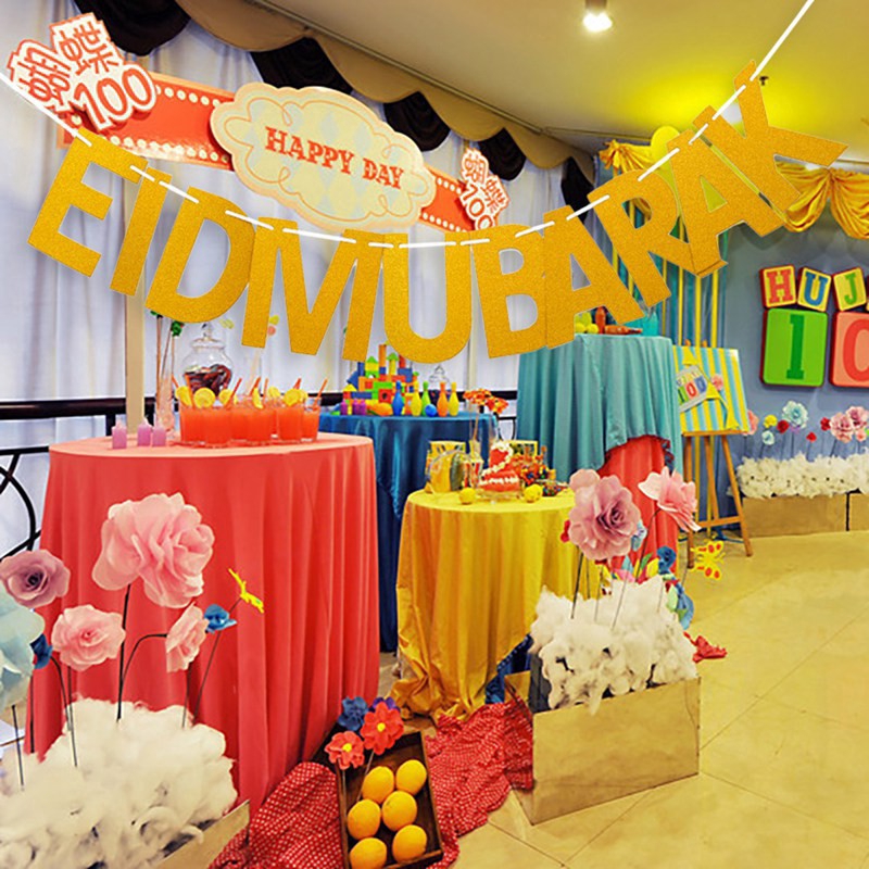Haoshuiyuan1 Eid Mubarak Letters String Flag Wedding Party Diy